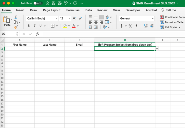 Complete each column without adding any additional headers, columns, or rows. If you do that, it will not upload to the platform.